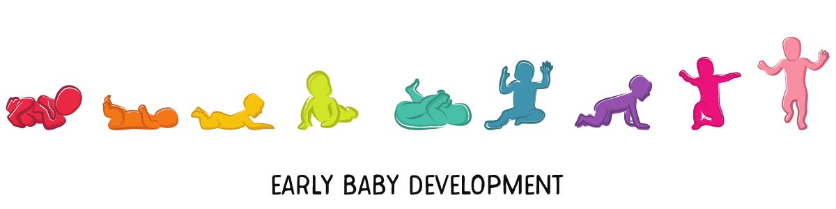 Although from the outside, it may seem as if babies are fumbling about in random ways, they are in fact expressing a deeply instinctual intelligence, that simultaneously facilitates: